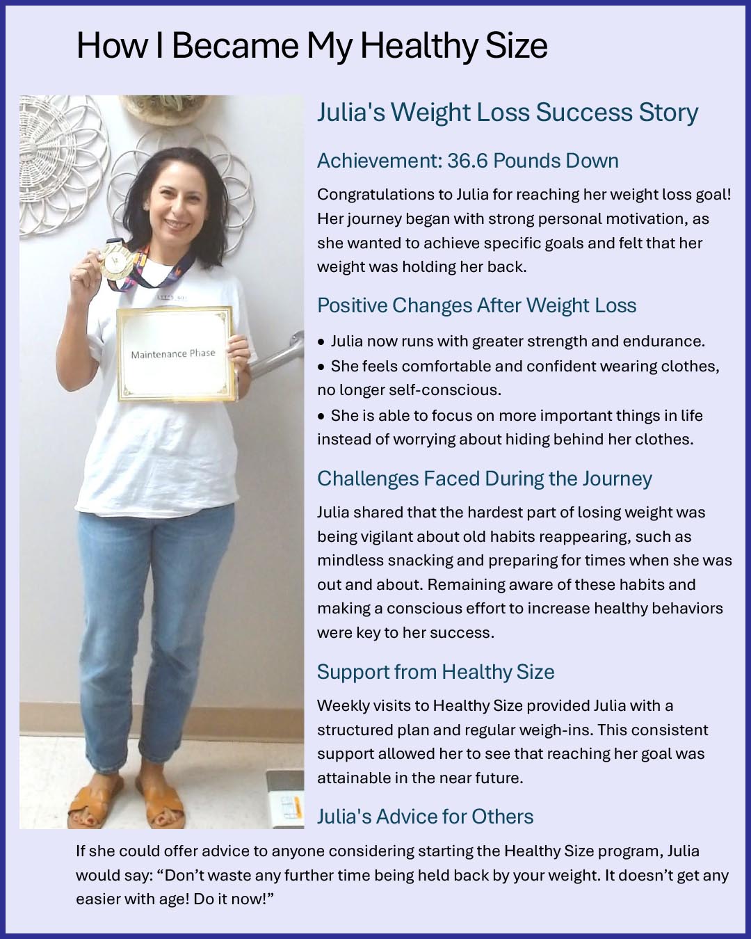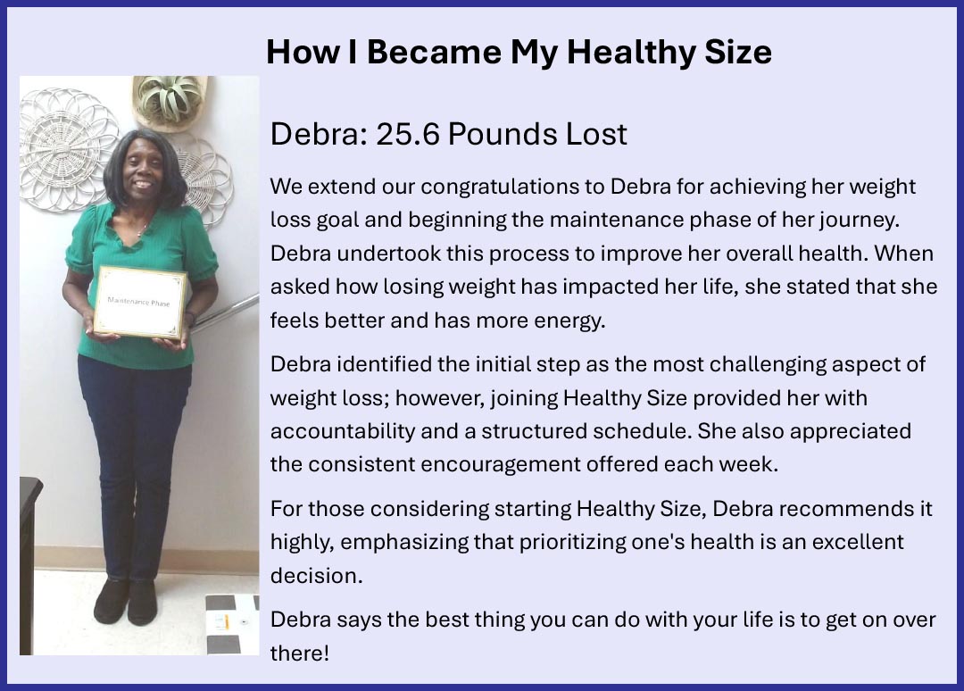 Healthy Size Clinic makes it easier than ever to lose weight and keep it off. You’ll find that our experienced staff are here for you. It’s their support that makes our program so effective. They have all “been in your shoes” by being a patient of our program before becoming staff members!